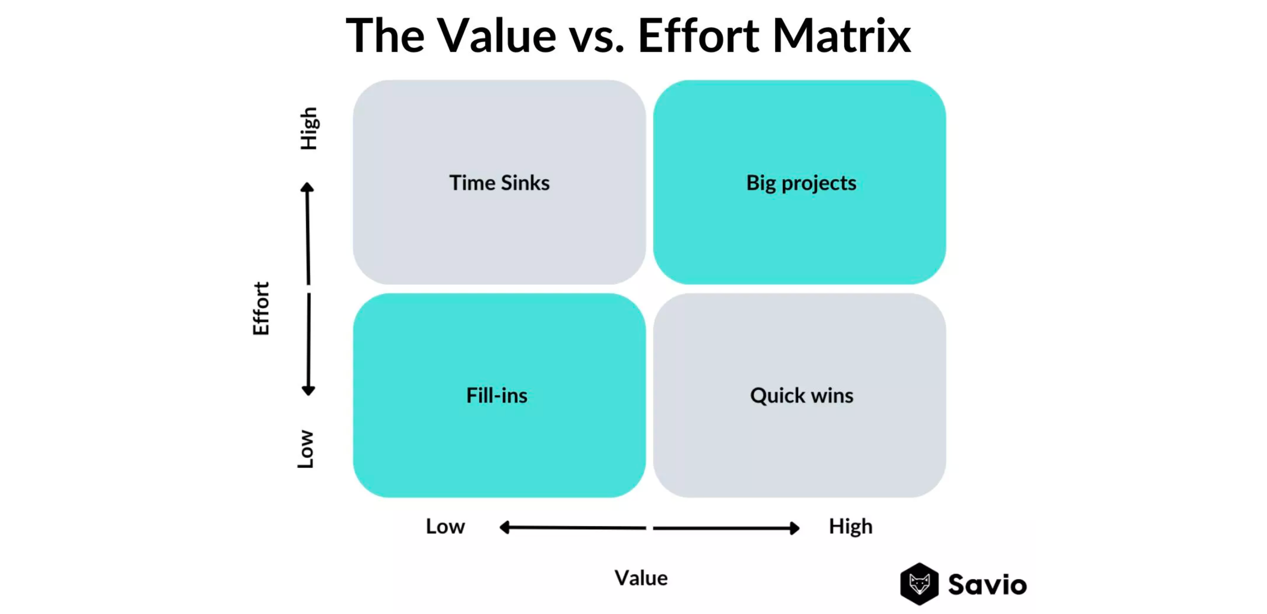 You can now plot them on a Value vs. Effort Matrix chart like the one below from Savio: